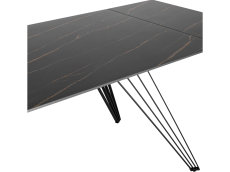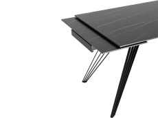Стильный в сдержанным образе раскладной стол станет прекрасным дополнением для кухни и обеденной зоны. Столешница из темной керамики устойчива к повреждениям и истиранию, долговечный материал с прочной текстурой. По бокам стола расположены дополнительные раздвижные элементы, которые увеличивают полезную площадь столешницы на 40 или 80 см