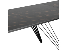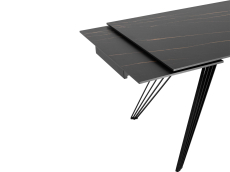 Стильный в сдержанным образе раскладной стол станет прекрасным дополнением для кухни и обеденной зоны. Столешница из темной керамики устойчива к повреждениям и истиранию, долговечный материал с прочной текстурой. По бокам стола расположены дополнительные раздвижные элементы, которые увеличивают полезную площадь столешницы на 40 или 80 см