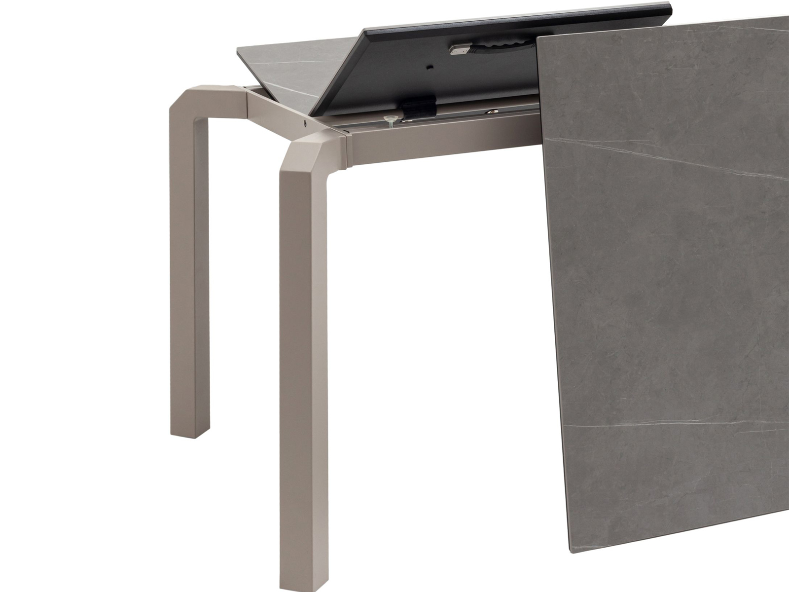 Преимущество стола — возможность регулировки длины от 160 до 220 см. Это удобно как для небольших обедов, так и для приема гостей. Столешница легко раздвигается, подчеркивая его универсальность.