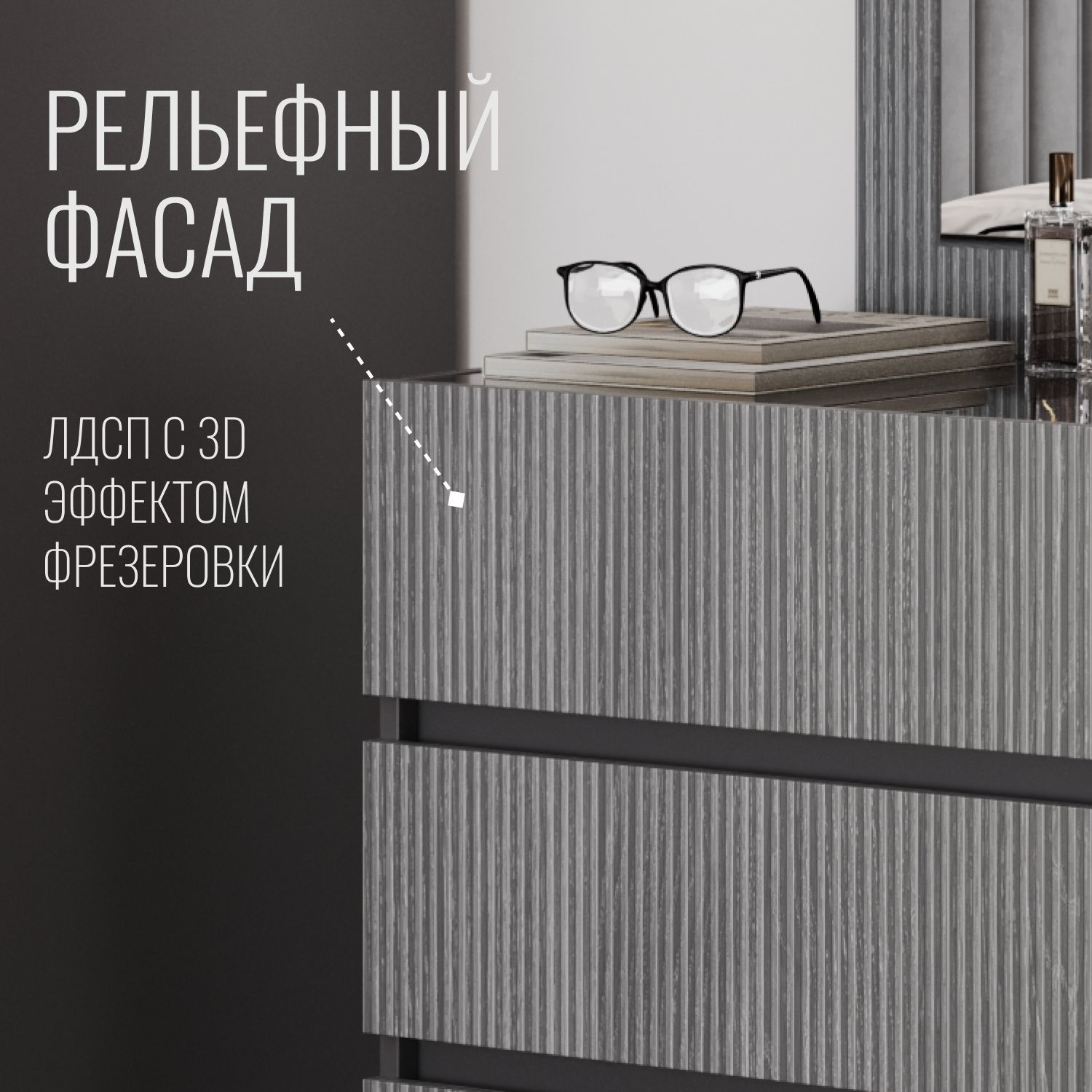 Рельефный фасад из ЛДСП создаёт элегантный внешний вид, подчёркивая современный стиль.