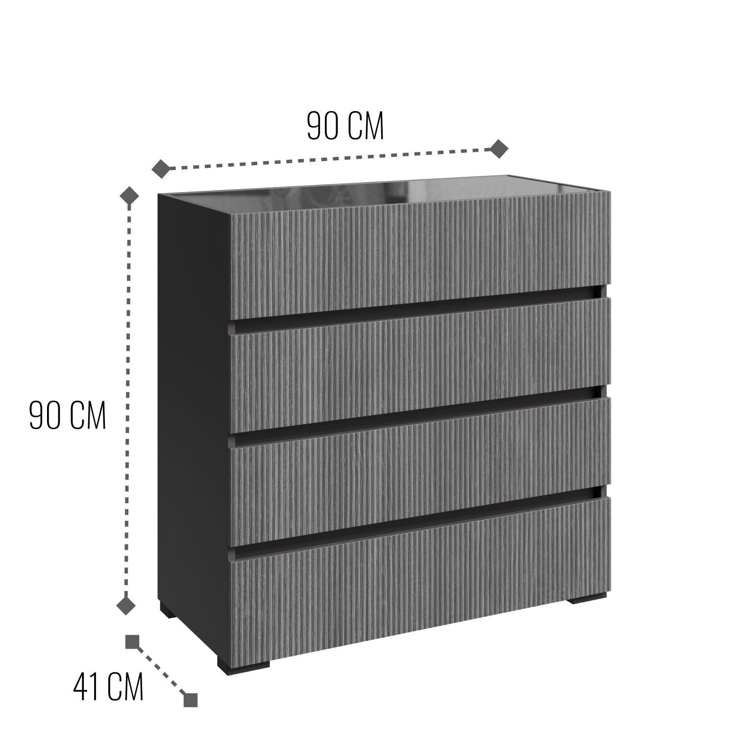 Комод шириной 90 см с рельефным фасадом и закалённым стеклом