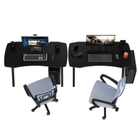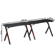 Геймерский стол создан специально для геймеров обеспечит правильное положение для комфортной игры на компьютере. В комплектации 2 стола. Каждая столешница изготовлена из плиты МДФ (15 мм) и покрыта специальным ламинатом, внешне напоминающим карбоновую структуру. Благодаря большой поверхности столешницы (120х60 см) пользователь сможет свободно управлять мышью, использовать дополнительный монитор или разместить на нем колонки и другие необходимые аксессуары. По краям столешница специально профилирована, поэтому у игрока остается больше места при приближении к столу. Помимо функциональности, углубления каждому придают столу уникальную и интересную форму, идеальную для молодежной комнаты. Столешницы установлены на металлические устойчивые ножки с порошковым покрытием. Регулируемые опоры позволяют идеально выровнять стол.