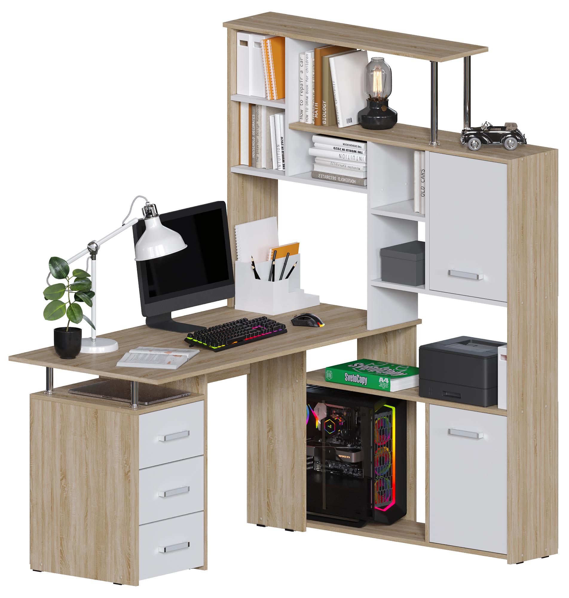 Компьютерный стол КС-15 Орхидея Правый (Дуб Сонома/Белый)