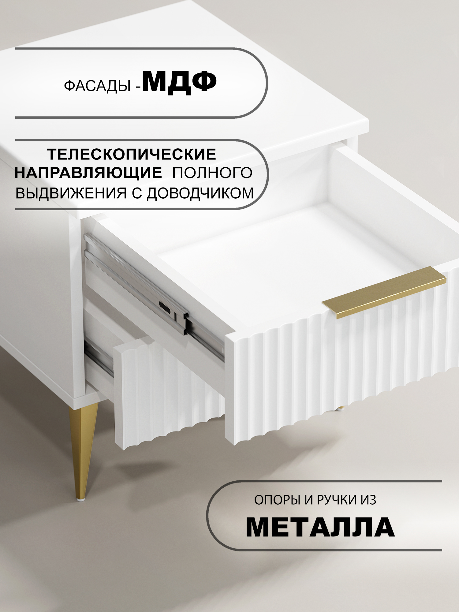 Тумба прикроватная Афина АФ-02 – идеальное решение для современной спальни. Благодаря продуманной конструкции и качественным материалам она сочетает в себе практичность и эстетику. Тумбочка подойдет для неоклассического и современного интерьера.