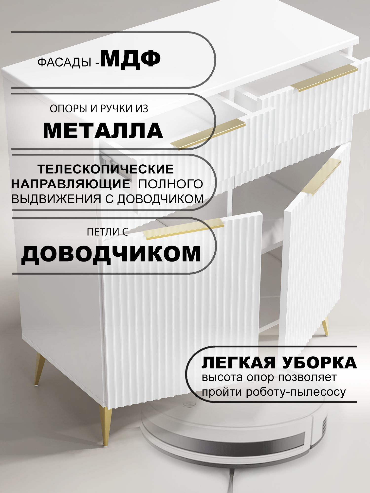• Стильный дизайн — рельефные фасады с фрезеровкой "волна" в нежном оттенке белый бриллиант/бланж