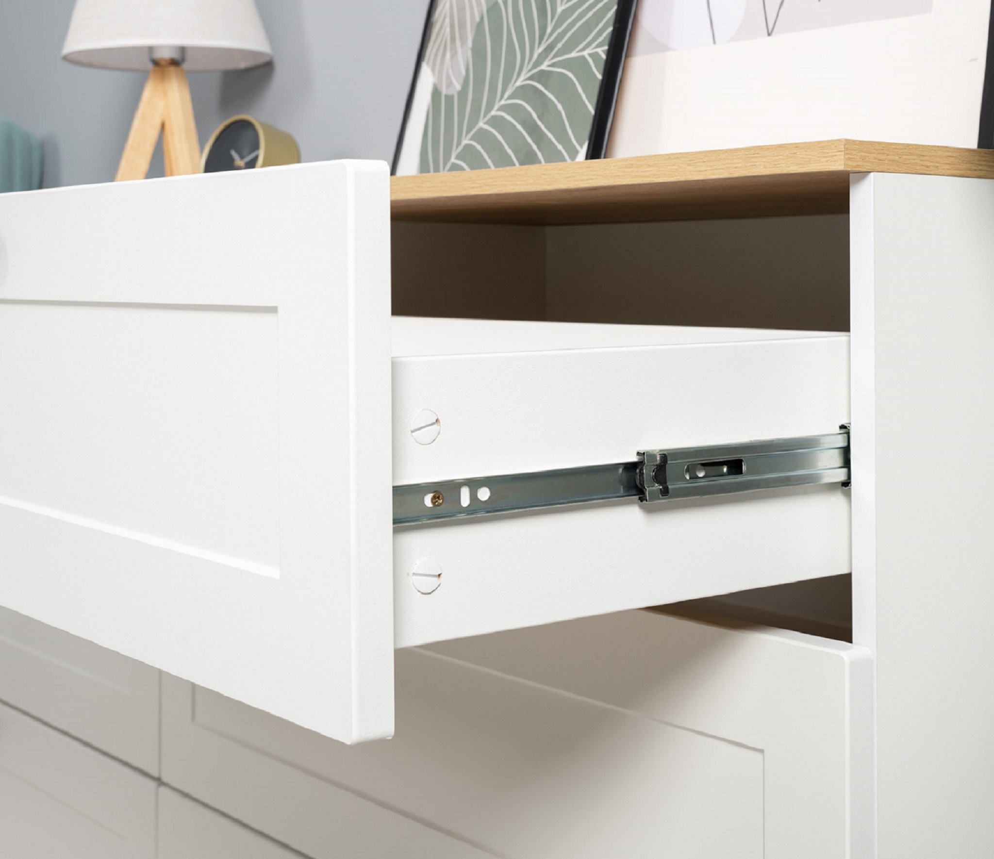Выдвижные ящики на направляющих полного выдвижения.
