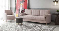 Комплект состоит из дивана-кровати, кресла для отдыха и пуфа.