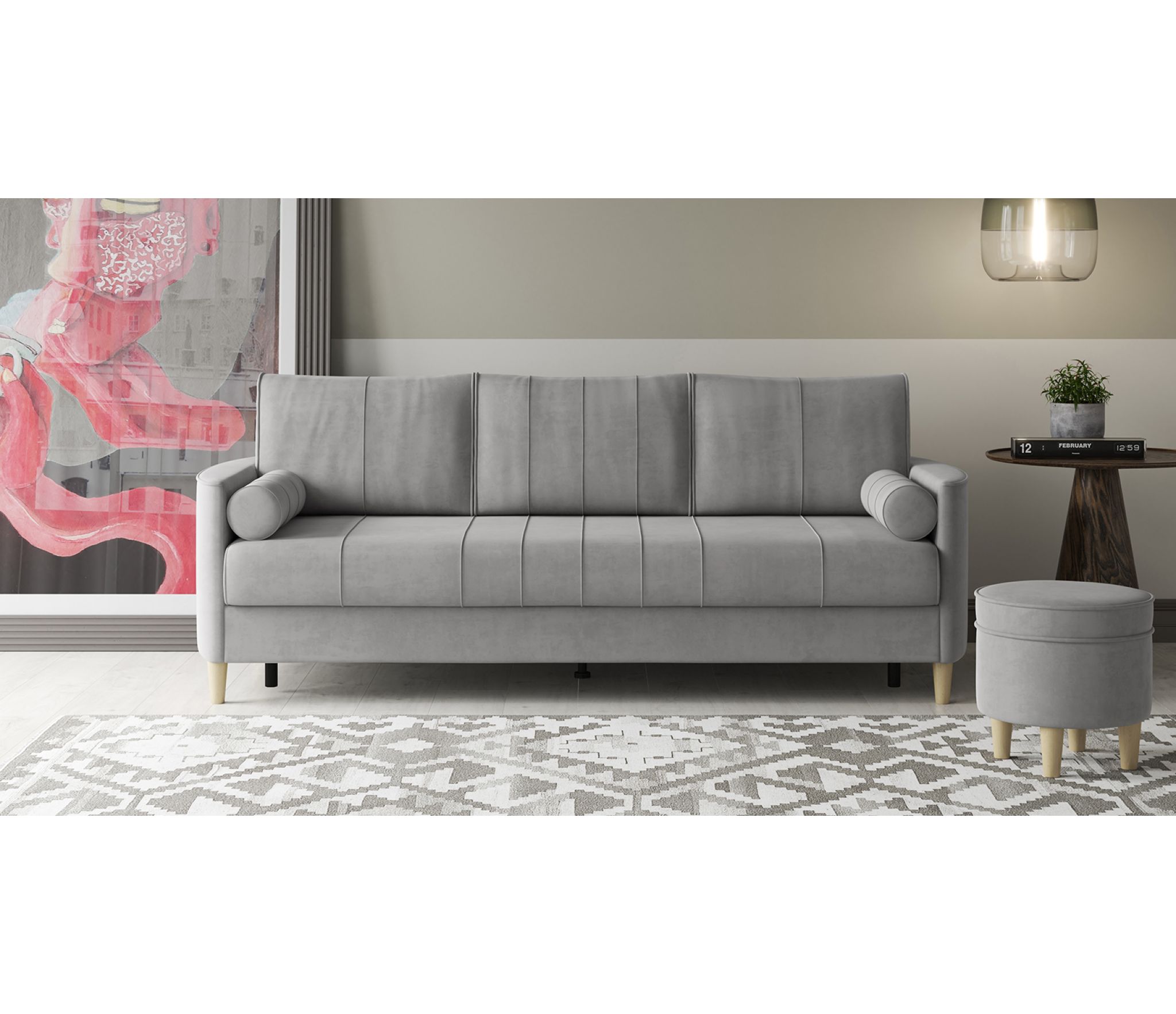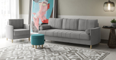 Комплект состоит из дивана-кровати, кресла для отдыха и пуфа.