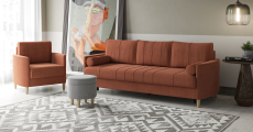Комплект состоит из дивана-кровати, кресла для отдыха и пуфа.