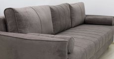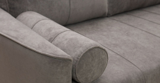 Кант на торцах приспинных подушек, сиденья и подлокотников. Защипы на сиденье и приспинных подушках. Две декоративные подушки-валика с защипами.