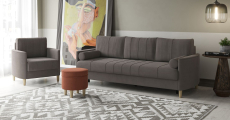 Комплект состоит из дивана-кровати, кресла для отдыха и пуфа.