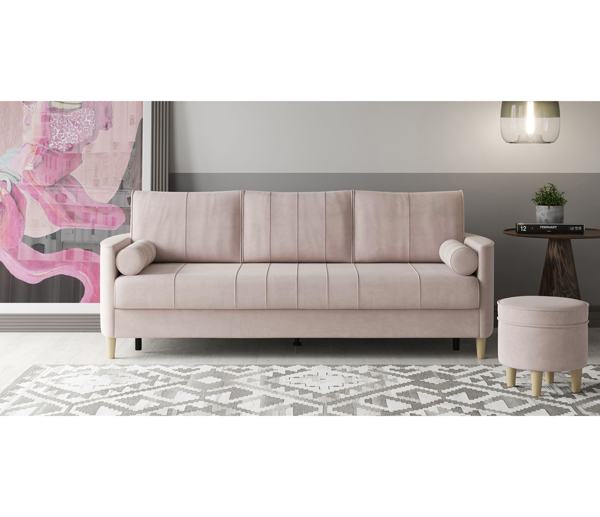Комплект состоит из дивана-кровати, кресла для отдыха и пуфа.