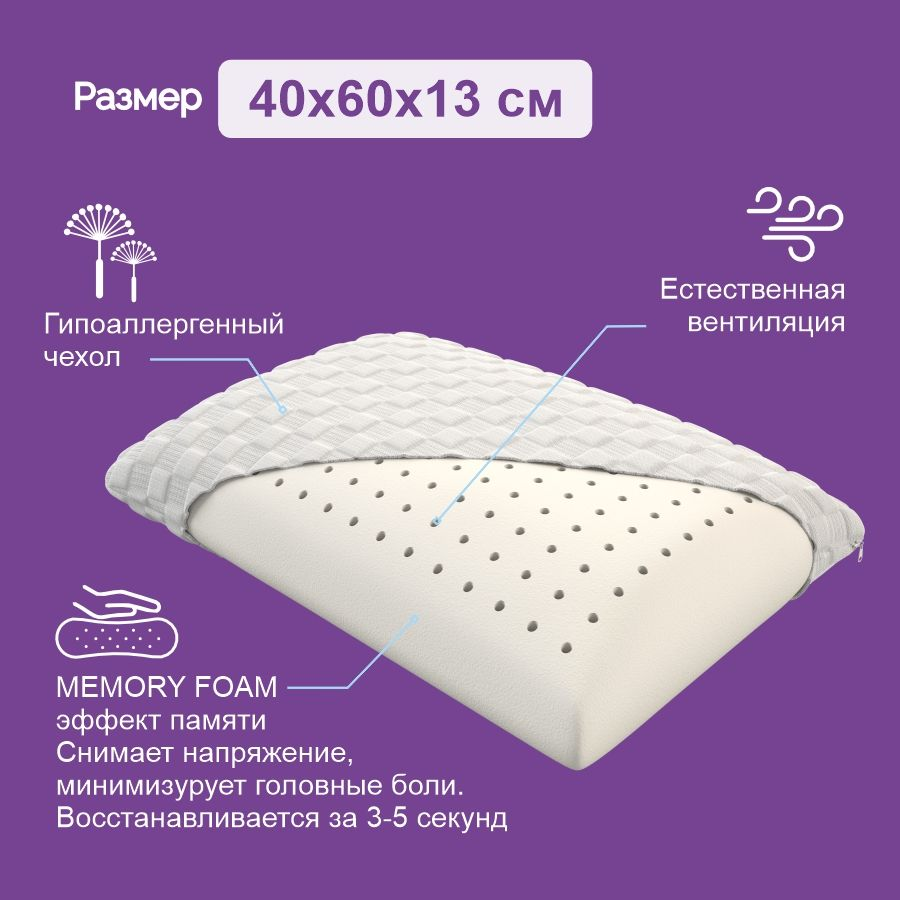 Delicatex Orto Memory - анатомическая дышащая подушка с эффектом памяти. Классическая форма, оптимальная упругость - подходит для сна в любой позе.