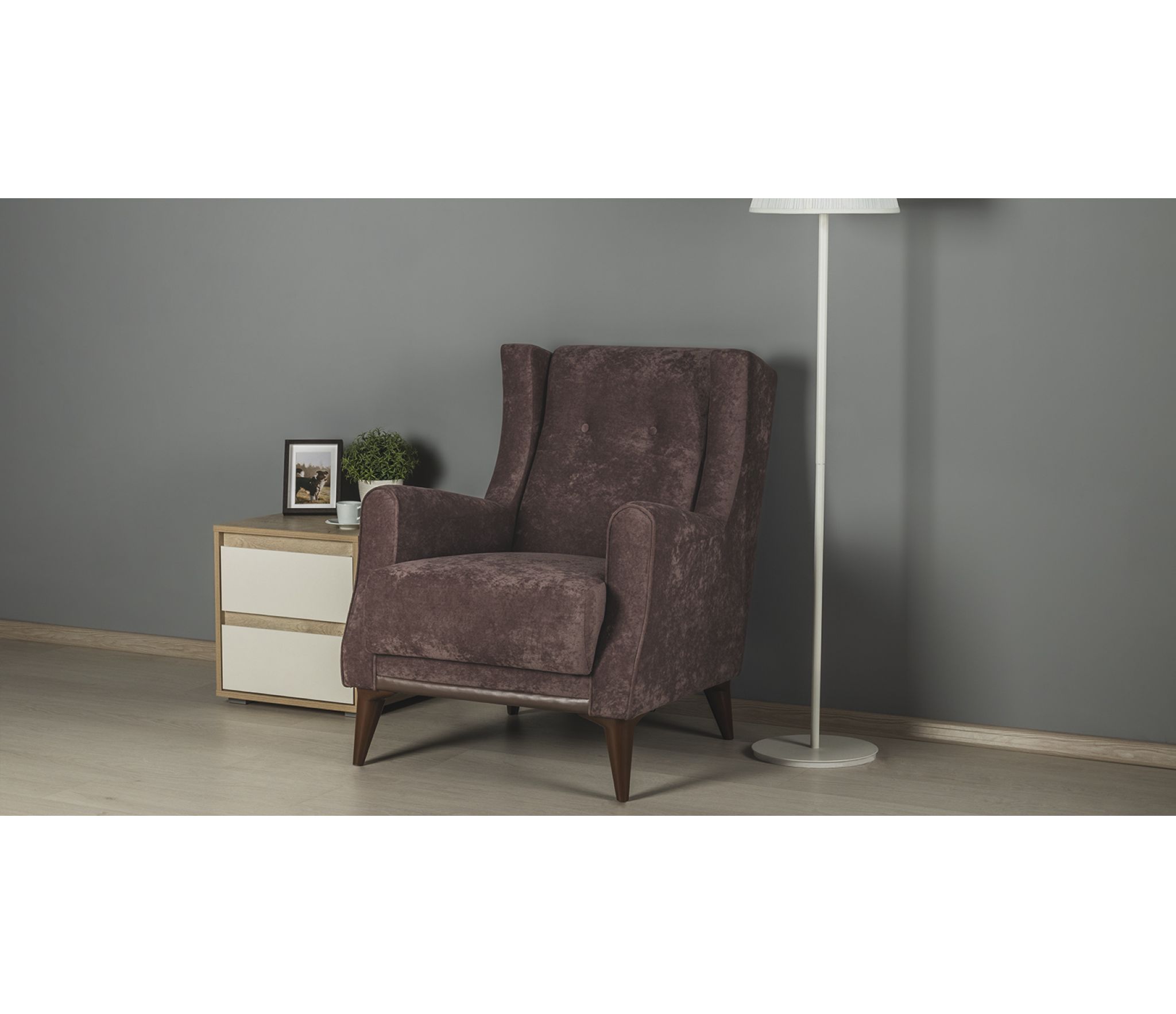 Выполнен в модном мягком велюре ROMANCE оригинальной фактуры.
