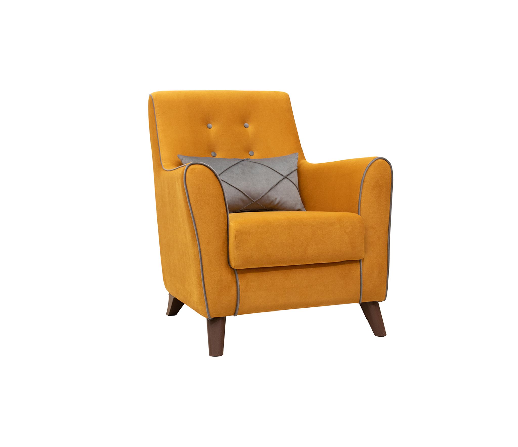 Декоративный кант на кресле, защипы на декоративной подушке, пуговицы на спинке.