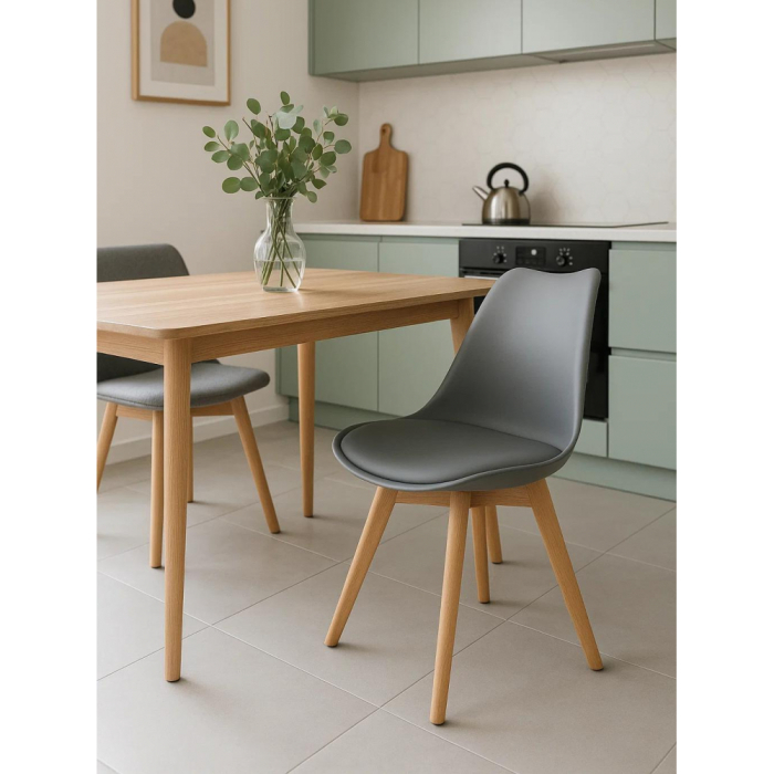 Материал каркаса - Массив бука; Материал сиденья - экокожа / пластик; Материал ножек - Массив бука; Материал обивки - экокожа; Ширина - 49; Глубина - 57; Высота - 82; Ширина сиденья - 45; Глубина сиденья - 43; Высота сиденья - 45;
