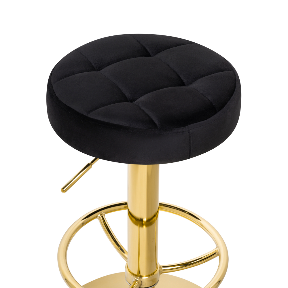 Барный стул Marun - каркас изготовлен их прочного металла, окрашенного в золотистый цвет. Велюровая обивка (100% полиэстер) - при контакте не будет дискомфорта, т.к. материал сохраняет тепло и не будет холодным. Высота подножки: 23 - 44 см. Высота сиденья регулируется от 63 до 84см