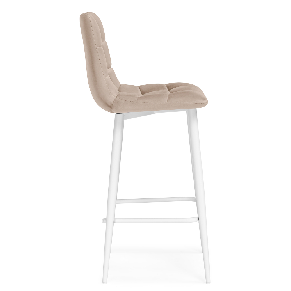 Барный стул Чилли К с белым металлическим каркасом. Устойчивый барный стул с минимальным дизайном. Выдерживает вес до 100кг. Простая сборка