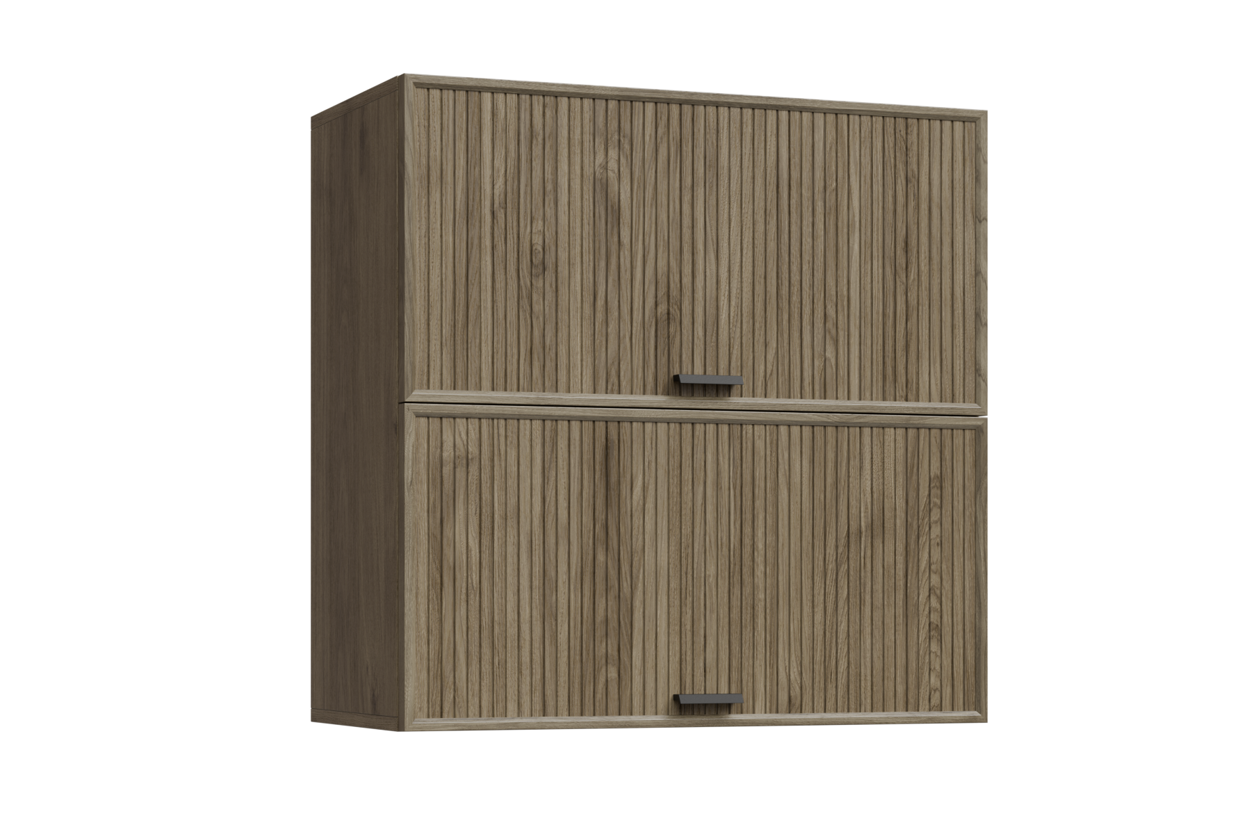 ГТ-Р-СК - весь модуль Гикори Джексон темный, глухой фасад ребристый, встроенная антресоль Серый Кашемир