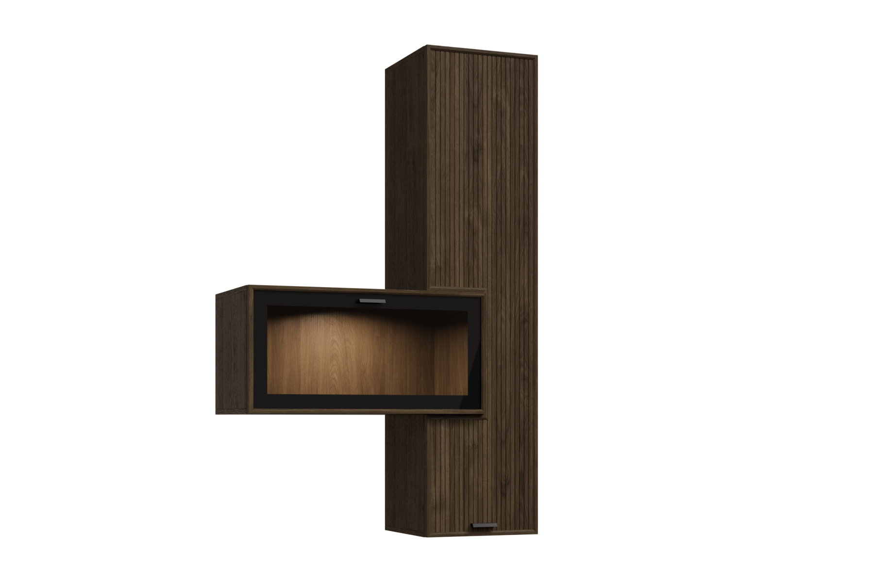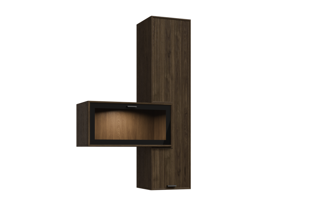 ГТ-Р-СК - весь модуль Гикори Джексон темный, глухой фасад ребристый, встроенная антресоль Серый Кашемир