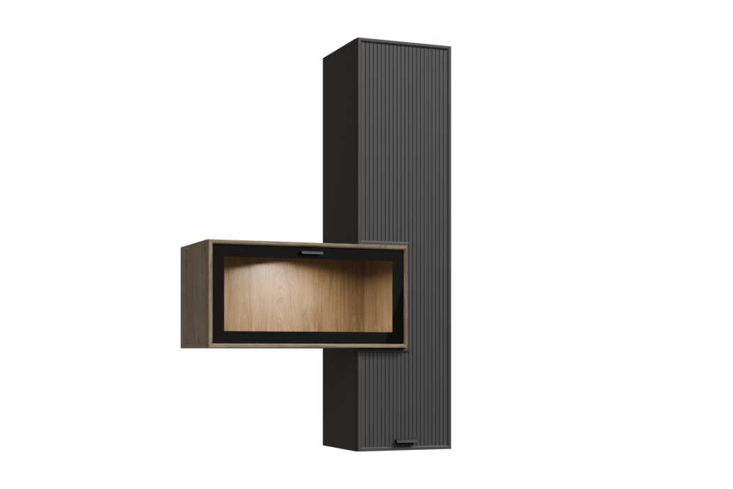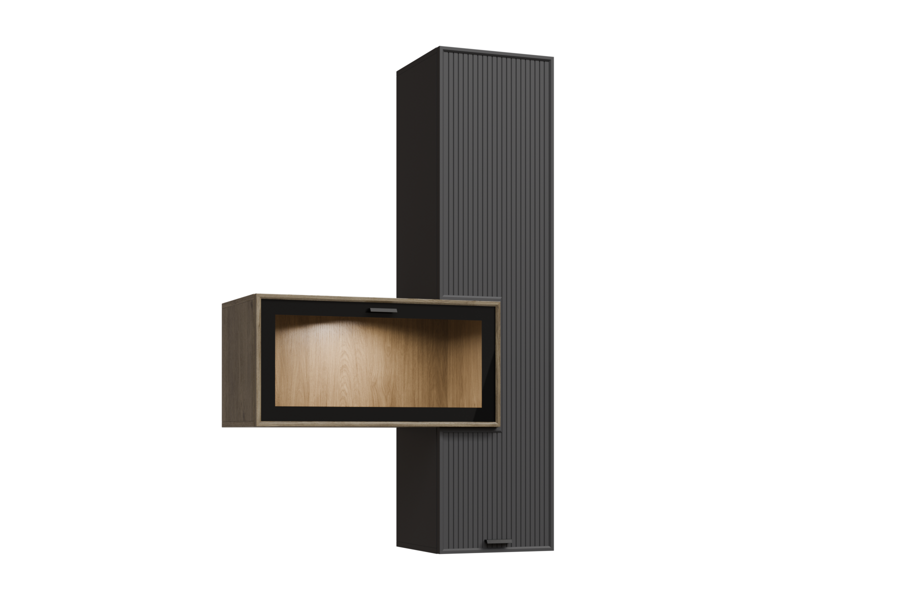 СО-Р-ГС - весь модуль Серый Оникс, глухой фасад ребристый, встроенная антресоль Гикори Джексон светлый