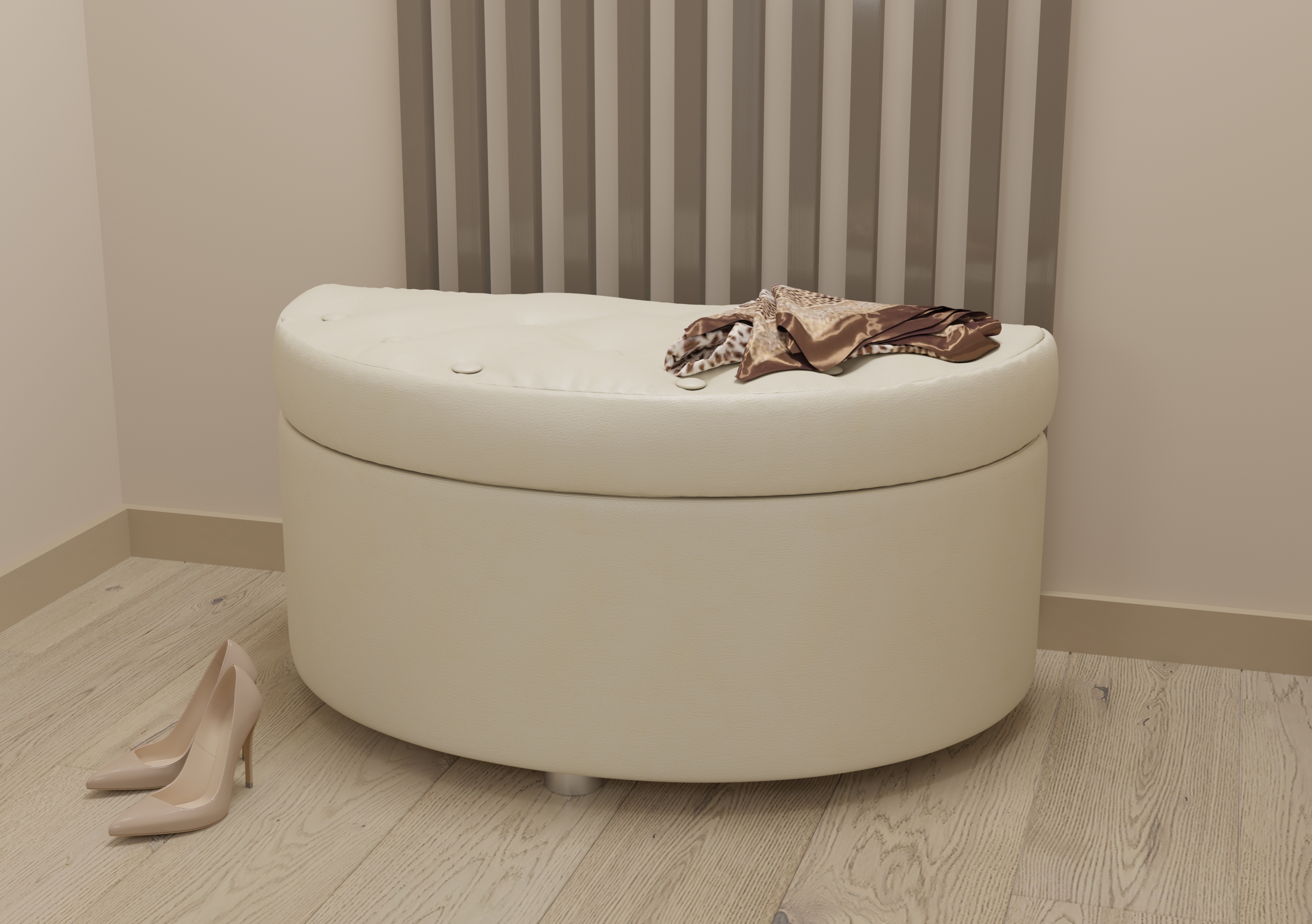 Банкетка "Луна" имеет стильный и выразительный дизайн и станет престижным украшением гостиной или прихожей. Под мягким сиденьем расположен ящик для хранения различных вещей.
