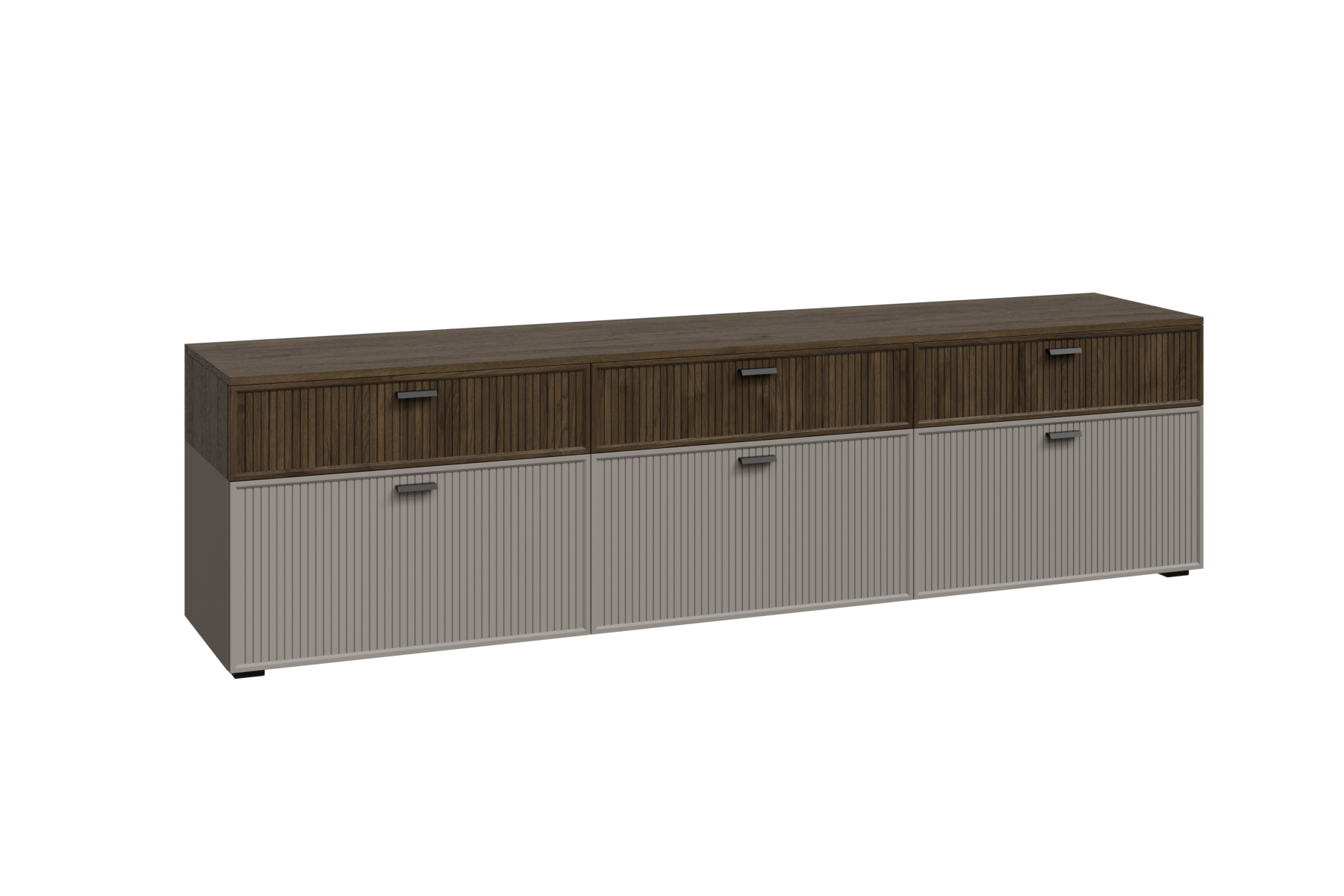 ГТ-Р-СК - весь модуль Гикори Джексон темный, глухой фасад ребристый, встроенная антресоль Серый Кашемир