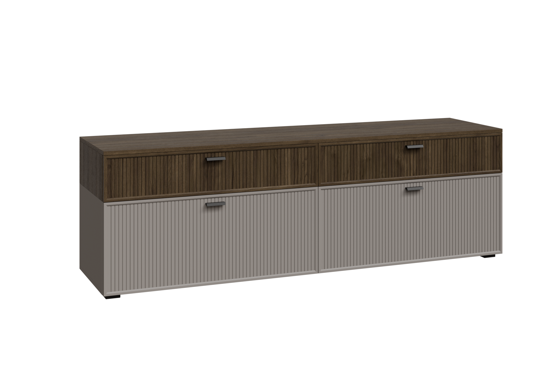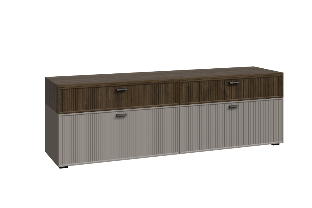 ГТ-Р-СК - весь модуль Гикори Джексон темный, глухой фасад ребристый, встроенная антресоль Серый Кашемир