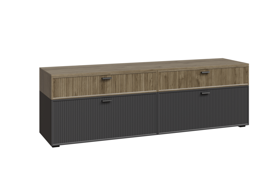 СО-Р-ГС - весь модуль Серый Оникс, глухой фасад ребристый, встроенная антресоль Гикори Джексон светлый