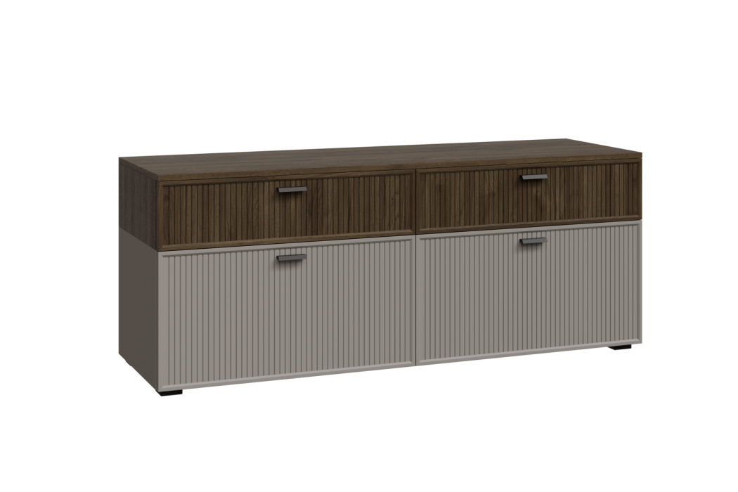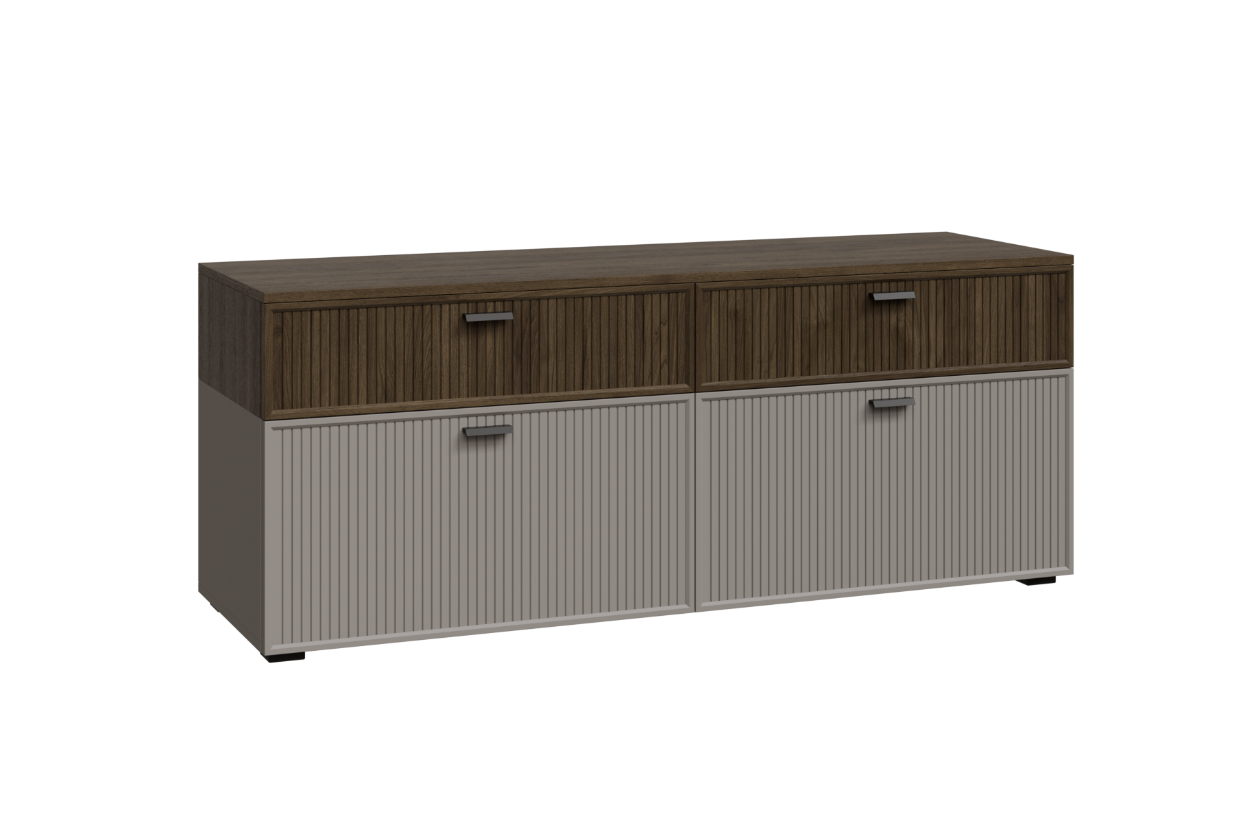 ГТ-Р-СК - весь модуль Гикори Джексон темный, глухой фасад ребристый, встроенная антресоль Серый Кашемир