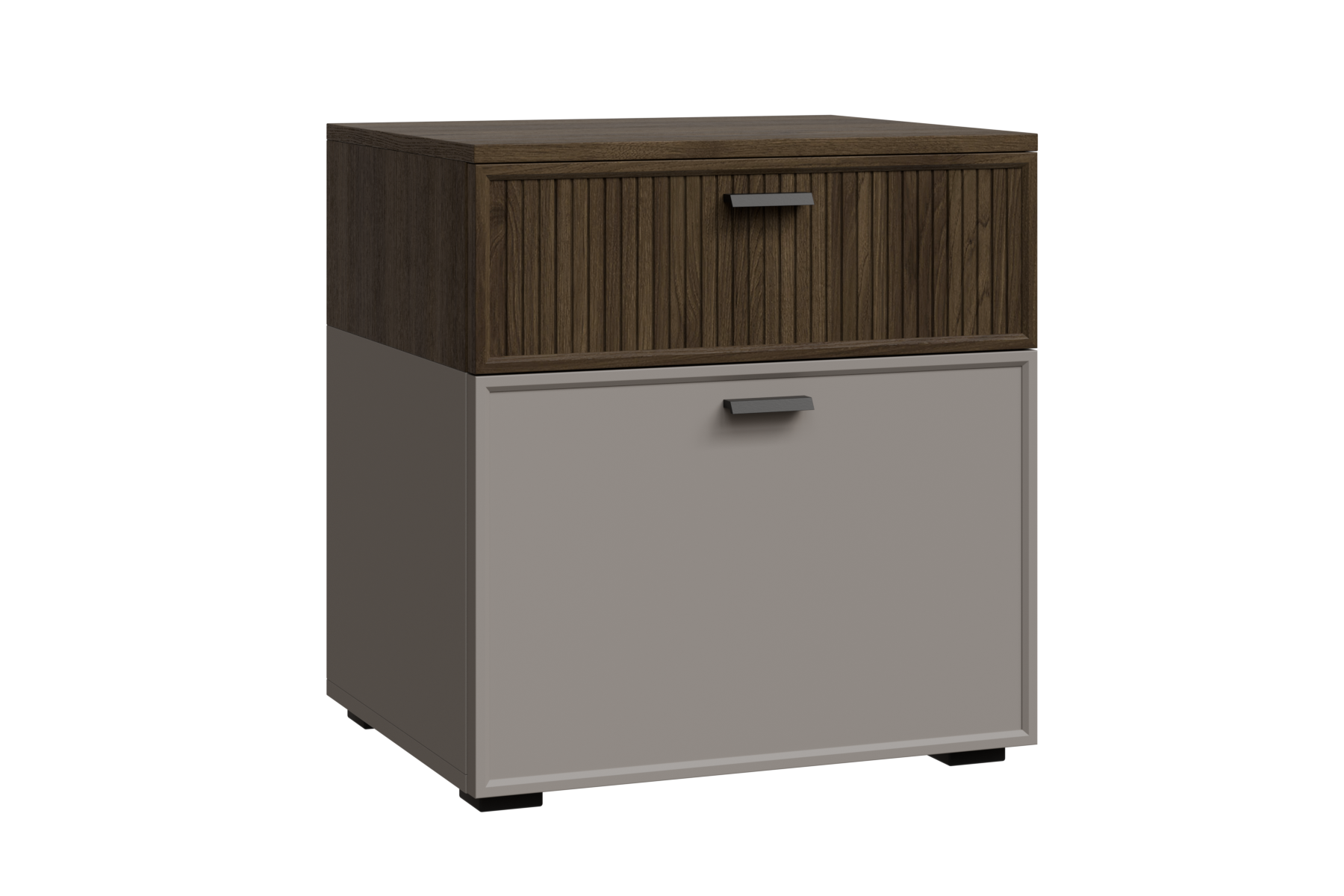 ГТ-Р-СК - весь модуль Гикори Джексон темный, глухой фасад ребристый, встроенная антресоль Серый Кашемир