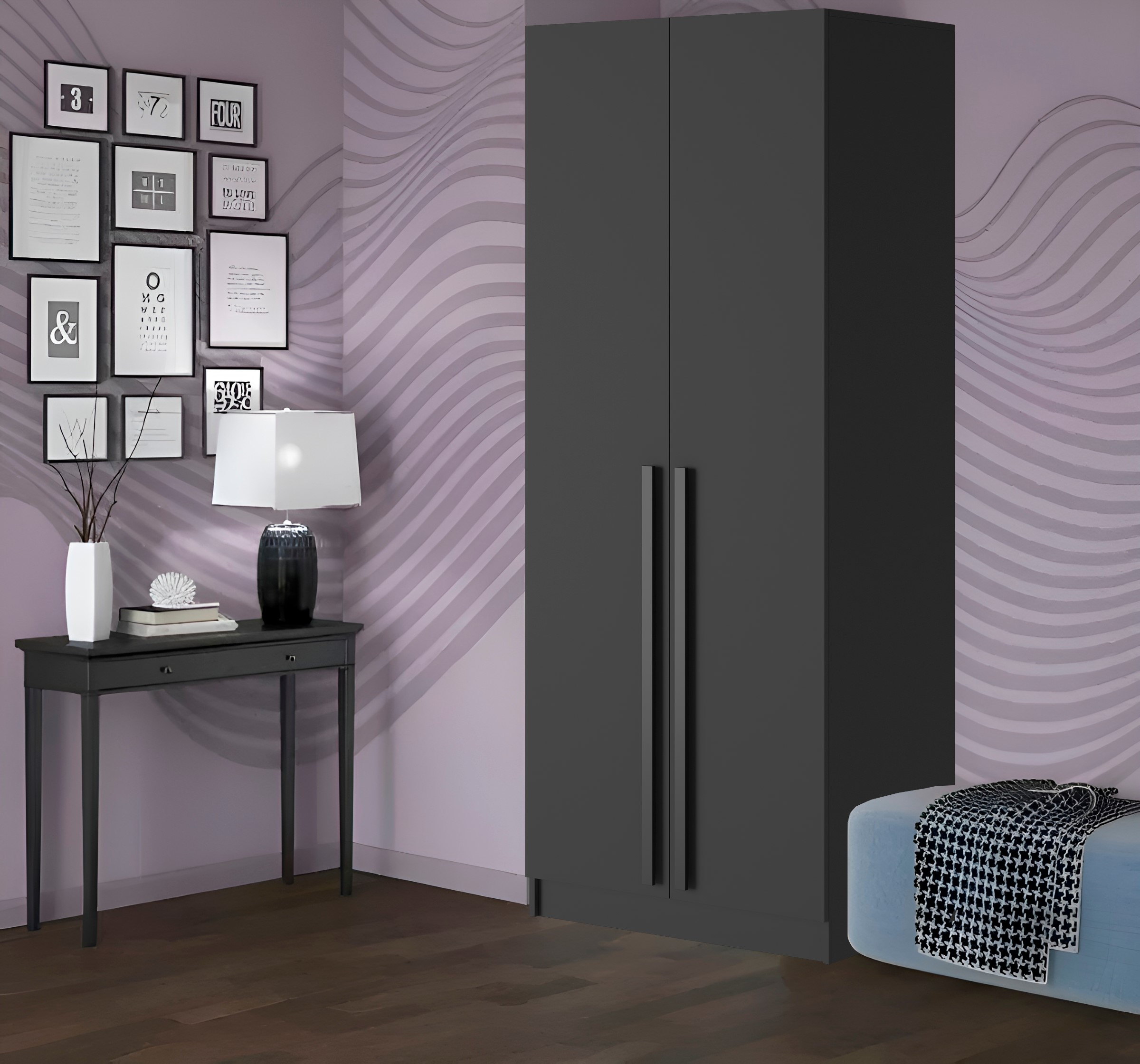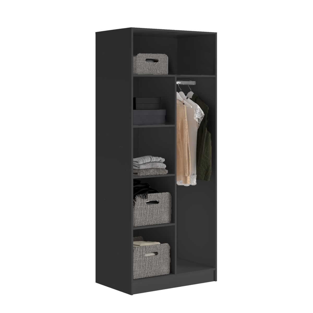 Распашной шкаф для одежды выполнен из практичного ЛДСП, предназначен для хранения одежды, обуви, головных уборов и аксессуаров.