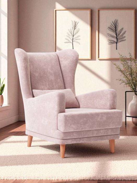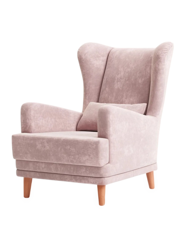 Мягкое кресло Вегас сделано из фанеры и не содержит вредных веществ и материалов, что делает ее безопасной для здоровья и безопасной для окружающей среды. Ткань велюр Crush. Наполнитель ППУ имеет несколько преимуществ перед другими материалами, используемыми в производстве мебели. Во-первых, он обладает высокой упругостью и комфортом, что делает его идеальным для создания мягкой мебели и подушек. Во-вторых, ППУ является долговечным материалом, который не теряет своих свойств со временем и не деформируется при использовании.Высокие опоры создают визуальный эффект легкости и позволяют просто и удобно совершить уборку под креслом не передвигая его. Так же большим плюсом является то, что под креслом проходит любой робот пылесос. Ножки кресла выполнены из массива березы, что делает конструкцию кресла надежной и стабильной. Мягкое кресло на ножках станет оригинальным украшением вашего дома. Выполнено в духе английского кресла с ушами. Выверенные формы спинки, мягкие подлокотники в совокупности с правильной эргономикой посадки и укутывающими боковинами сделают кресло любимцем домочадцев и ваших гостей. Мебель для дома. Мягкая подушка в комплекте способствует более комфортному пребыванию в каминном кресле. Плотное соединение нитей препятствует образованию «зацепок» и выбивающихся ниток, не растягивается. Выдерживает нагрузку до 150 кг. Просим обратить внимание, что опоры могут быть вложены внутрь подушки. Классическое широкое кресло - это не только универсальная и стильная мебель, но и функциональное дизайнерское решение для любого помещения. Может быть использовано в разных комнатах, включая гостиную или кухню, у камина для комфортного размещения гостей, в спальню для релаксации, отдыха и чтения книг. В детской комнате можно разместить кресло и использовать для кормления или укачивания детей. Благодаря универсальному яркому дизайну данный предмет мебели впишется в рабочий кабинет, офис, салон красоты и лаунж зону, чтобы ваши клиенты могли чувствовать себя комфортно и расслабленно. Если вы ищете мебель для своей дачи или балкона, то компактное кресло станет идеальным выбором. При правильном подборе цвета ткани кресло будет гармонично смотреться в таких стилях, как: скандинавский, классический, прованс и лофт. Для полного вашего расслабления мы предусмотрели дополнительную опцию поддержки для ног у этого кресла для дома (что очень важно для профилактики заболеваний сосудов). К каждому нашему мягкому креслу вы сможете приобрести пуф в цвет кресла схожий по дизайну. Собрать тем самым полный комплект для домашнего отдыха (пуфик приобретается отдельно).Мы ответственно подходим к подбору материалов для изготовления каждого изделия. Также мы тщательно проверяем мебель перед отправкой нашим дорогим клиентам. Нам важно, чтобы вы гордились покупкой. Ведь это значит, что мы не зря каждое утро приходим на работу!В процессе эксплуатации рекомендуем периодически пылесосить обивку на минимальной мощности с использованием узкой насадки для мебели. Таким образом, вы сможете устранить с поверхности ткани пыль и шерсть животных. Слабые загрязнения можно удалить влажными салфетками, допустимо применение мыльного раствора с нейтральным Ph (например, детское мыло). Также для продления ощущения новизны и лоска ткани рекомендуем время 