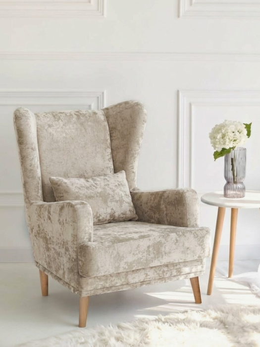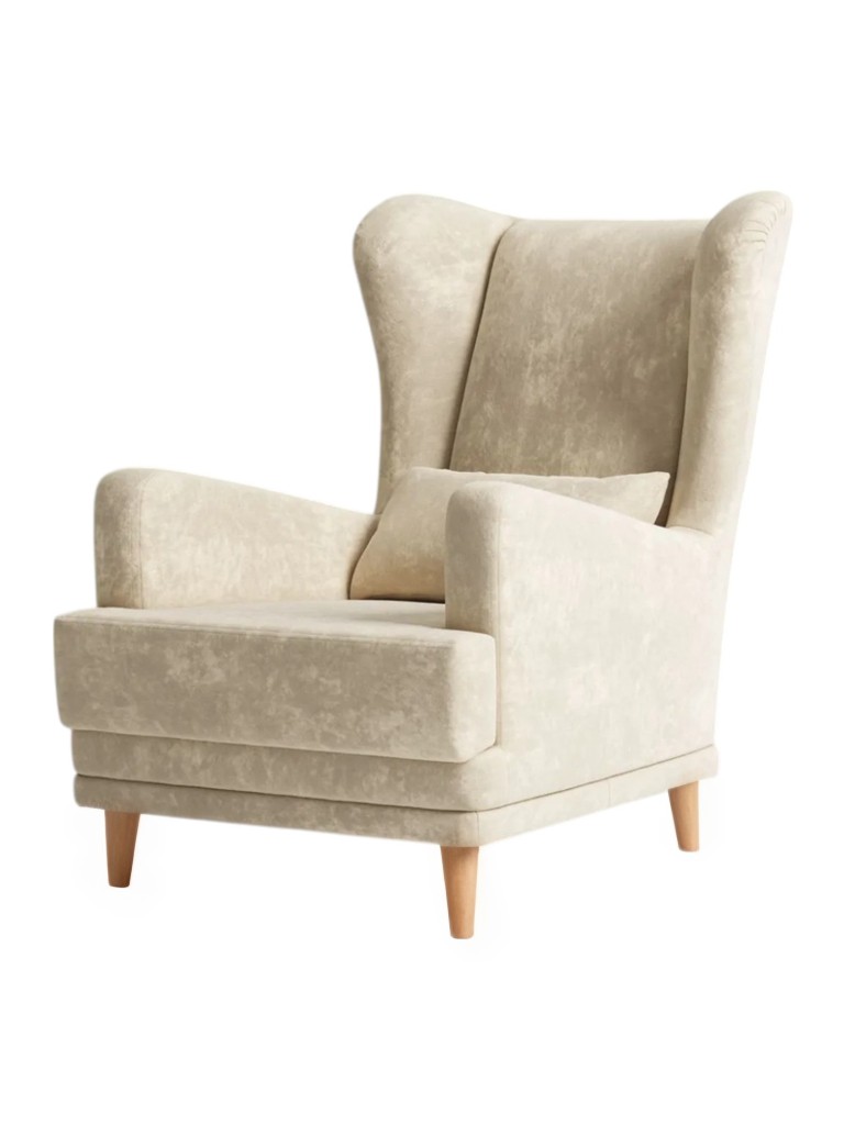 Мягкое кресло Вегас сделано из фанеры и не содержит вредных веществ и материалов, что делает ее безопасной для здоровья и безопасной для окружающей среды. Ткань велюр Crush. Наполнитель ППУ имеет несколько преимуществ перед другими материалами, используемыми в производстве мебели. Во-первых, он обладает высокой упругостью и комфортом, что делает его идеальным для создания мягкой мебели и подушек. Во-вторых, ППУ является долговечным материалом, который не теряет своих свойств со временем и не деформируется при использовании.Высокие опоры создают визуальный эффект легкости и позволяют просто и удобно совершить уборку под креслом не передвигая его. Так же большим плюсом является то, что под креслом проходит любой робот пылесос. Ножки кресла выполнены из массива березы, что делает конструкцию кресла надежной и стабильной. Мягкое кресло на ножках станет оригинальным украшением вашего дома. Выполнено в духе английского кресла с ушами. Выверенные формы спинки, мягкие подлокотники в совокупности с правильной эргономикой посадки и укутывающими боковинами сделают кресло любимцем домочадцев и ваших гостей. Мебель для дома. Мягкая подушка в комплекте способствует более комфортному пребыванию в каминном кресле. Плотное соединение нитей препятствует образованию «зацепок» и выбивающихся ниток, не растягивается. Выдерживает нагрузку до 150 кг. Просим обратить внимание, что опоры могут быть вложены внутрь подушки. Классическое широкое кресло - это не только универсальная и стильная мебель, но и функциональное дизайнерское решение для любого помещения. Может быть использовано в разных комнатах, включая гостиную или кухню, у камина для комфортного размещения гостей, в спальню для релаксации, отдыха и чтения книг. В детской комнате можно разместить кресло и использовать для кормления или укачивания детей. Благодаря универсальному яркому дизайну данный предмет мебели впишется в рабочий кабинет, офис, салон красоты и лаунж зону, чтобы ваши клиенты могли чувствовать себя комфортно и расслабленно. Если вы ищете мебель для своей дачи или балкона, то компактное кресло станет идеальным выбором. При правильном подборе цвета ткани кресло будет гармонично смотреться в таких стилях, как: скандинавский, классический, прованс и лофт. Для полного вашего расслабления мы предусмотрели дополнительную опцию поддержки для ног у этого кресла для дома (что очень важно для профилактики заболеваний сосудов). К каждому нашему мягкому креслу вы сможете приобрести пуф в цвет кресла схожий по дизайну. Собрать тем самым полный комплект для домашнего отдыха (пуфик приобретается отдельно).Мы ответственно подходим к подбору материалов для изготовления каждого изделия. Также мы тщательно проверяем мебель перед отправкой нашим дорогим клиентам. Нам важно, чтобы вы гордились покупкой. Ведь это значит, что мы не зря каждое утро приходим на работу!В процессе эксплуатации рекомендуем периодически пылесосить обивку на минимальной мощности с использованием узкой насадки для мебели. Таким образом, вы сможете устранить с поверхности ткани пыль и шерсть животных. Слабые загрязнения можно удалить влажными салфетками, допустимо применение мыльного раствора с нейтральным Ph (например, детское мыло). Также для продления ощущения новизны и лоска ткани рекомендуем время 