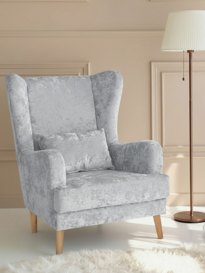 Мягкое кресло Вегас сделано из фанеры и не содержит вредных веществ и материалов, что делает ее безопасной для здоровья и безопасной для окружающей среды. Ткань велюр Crush. Наполнитель ППУ имеет несколько преимуществ перед другими материалами, используемыми в производстве мебели. Во-первых, он обладает высокой упругостью и комфортом, что делает его идеальным для создания мягкой мебели и подушек. Во-вторых, ППУ является долговечным материалом, который не теряет своих свойств со временем и не деформируется при использовании.Высокие опоры создают визуальный эффект легкости и позволяют просто и удобно совершить уборку под креслом не передвигая его. Так же большим плюсом является то, что под креслом проходит любой робот пылесос. Ножки кресла выполнены из массива березы, что делает конструкцию кресла надежной и стабильной. Мягкое кресло на ножках станет оригинальным украшением вашего дома. Выполнено в духе английского кресла с ушами. Выверенные формы спинки, мягкие подлокотники в совокупности с правильной эргономикой посадки и укутывающими боковинами сделают кресло любимцем домочадцев и ваших гостей. Мебель для дома. Мягкая подушка в комплекте способствует более комфортному пребыванию в каминном кресле. Плотное соединение нитей препятствует образованию «зацепок» и выбивающихся ниток, не растягивается. Выдерживает нагрузку до 150 кг. Просим обратить внимание, что опоры могут быть вложены внутрь подушки. Классическое широкое кресло - это не только универсальная и стильная мебель, но и функциональное дизайнерское решение для любого помещения. Может быть использовано в разных комнатах, включая гостиную или кухню, у камина для комфортного размещения гостей, в спальню для релаксации, отдыха и чтения книг. В детской комнате можно разместить кресло и использовать для кормления или укачивания детей. Благодаря универсальному яркому дизайну данный предмет мебели впишется в рабочий кабинет, офис, салон красоты и лаунж зону, чтобы ваши клиенты могли чувствовать себя комфортно и расслабленно. Если вы ищете мебель для своей дачи или балкона, то компактное кресло станет идеальным выбором. При правильном подборе цвета ткани кресло будет гармонично смотреться в таких стилях, как: скандинавский, классический, прованс и лофт. Для полного вашего расслабления мы предусмотрели дополнительную опцию поддержки для ног у этого кресла для дома (что очень важно для профилактики заболеваний сосудов). К каждому нашему мягкому креслу вы сможете приобрести пуф в цвет кресла схожий по дизайну. Собрать тем самым полный комплект для домашнего отдыха (пуфик приобретается отдельно).Мы ответственно подходим к подбору материалов для изготовления каждого изделия. Также мы тщательно проверяем мебель перед отправкой нашим дорогим клиентам. Нам важно, чтобы вы гордились покупкой. Ведь это значит, что мы не зря каждое утро приходим на работу!В процессе эксплуатации рекомендуем периодически пылесосить обивку на минимальной мощности с использованием узкой насадки для мебели. Таким образом, вы сможете устранить с поверхности ткани пыль и шерсть животных. Слабые загрязнения можно удалить влажными салфетками, допустимо применение мыльного раствора с нейтральным Ph (например, детское мыло). Также для продления ощущения новизны и лоска ткани рекомендуем время 