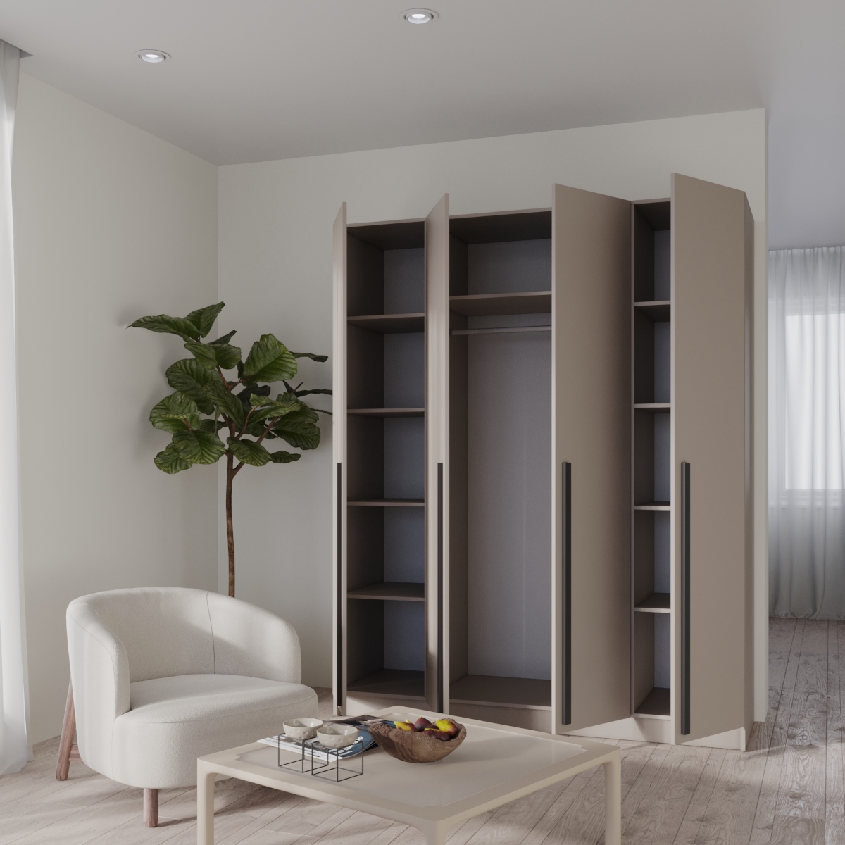 Распашной шкаф для одежды выполнен из практичного ЛДСП, предназначен для хранения одежды, обуви, головных уборов и аксессуаров.
