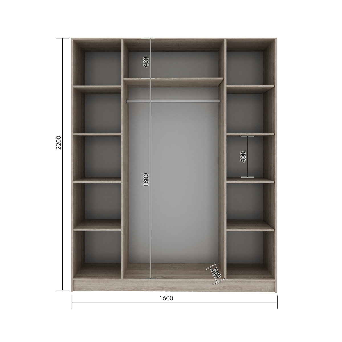 Размеры шкафа: 1600*2200*500 (ШхВхГ).