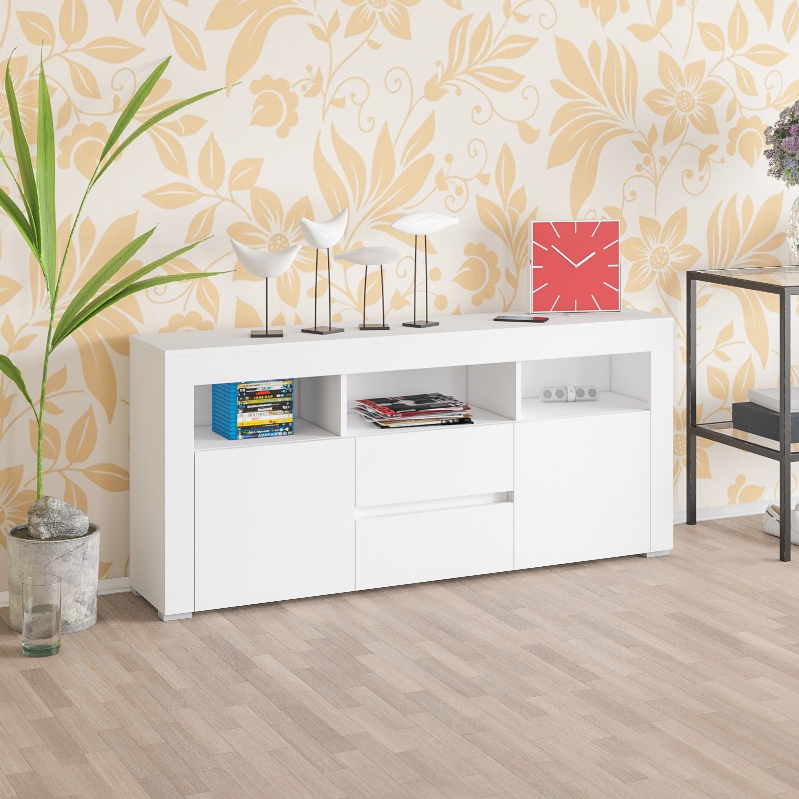 ТВ-тумба с двумя ящиками и дверками Сура 1604 - подходит для современного интерьера, сочетает эстетичный внешний вид с максимальной практичностью для гостиной или медиа-зоны.