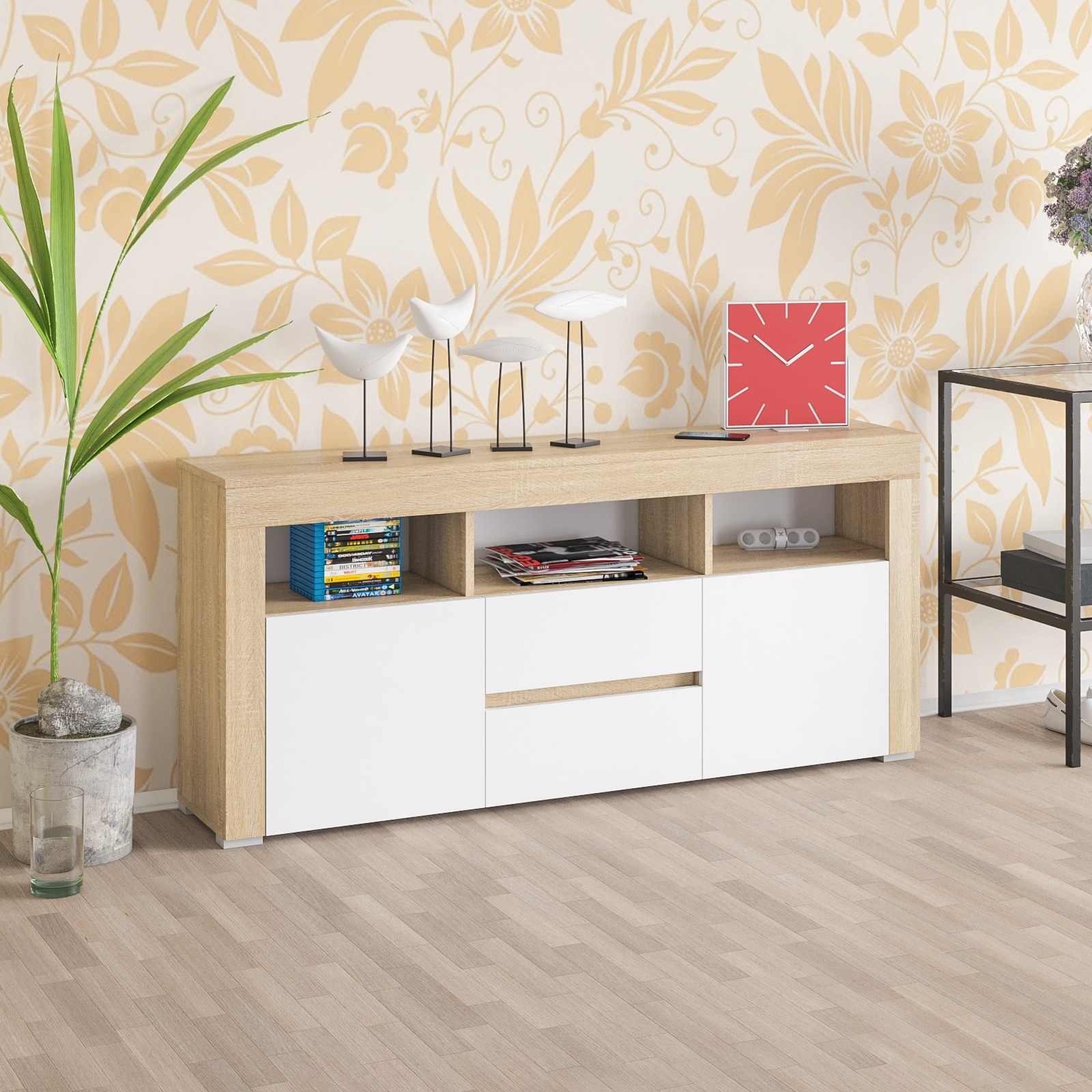 ТВ-тумба Сура 1604 с двумя ящиками и дверками (Дуб Сонома, Белый) Код I0000444405