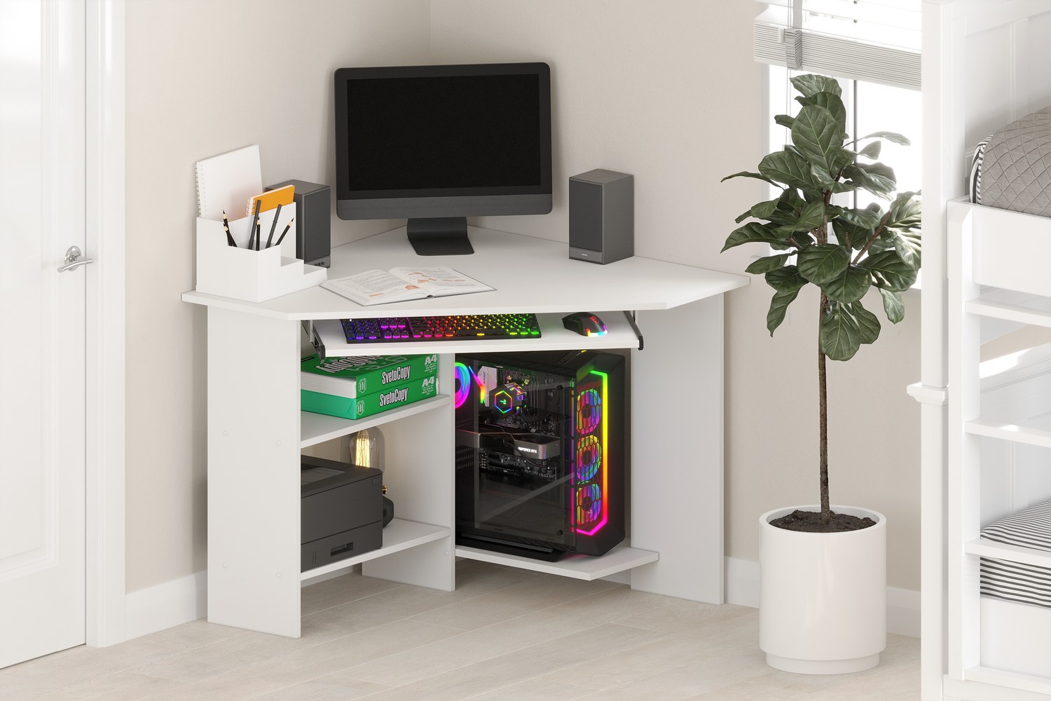 Угловой компьютерный стол 90х90 см с полочками для хранения, местом под системный блок и выдвижной полкой под клавиатуру. Продуманная конструкция стола Джаз-29 делает его удачным выбором для организации рабочего места по доступной цене. Цвет ЛДСП Дуб сонома. Поставляется в разобранном виде, в комплекте инструкция по сборке.