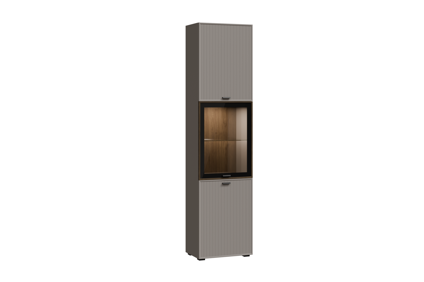 ГТ-Р-СК - весь модуль Гикори Джексон темный, глухой фасад ребристый, встроенная антресоль Серый Кашемир