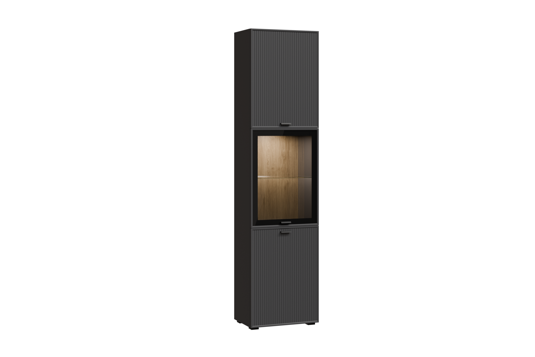 СО-Р-ГС - весь модуль Серый Оникс, глухой фасад ребристый, встроенная антресоль Гикори Джексон светлый