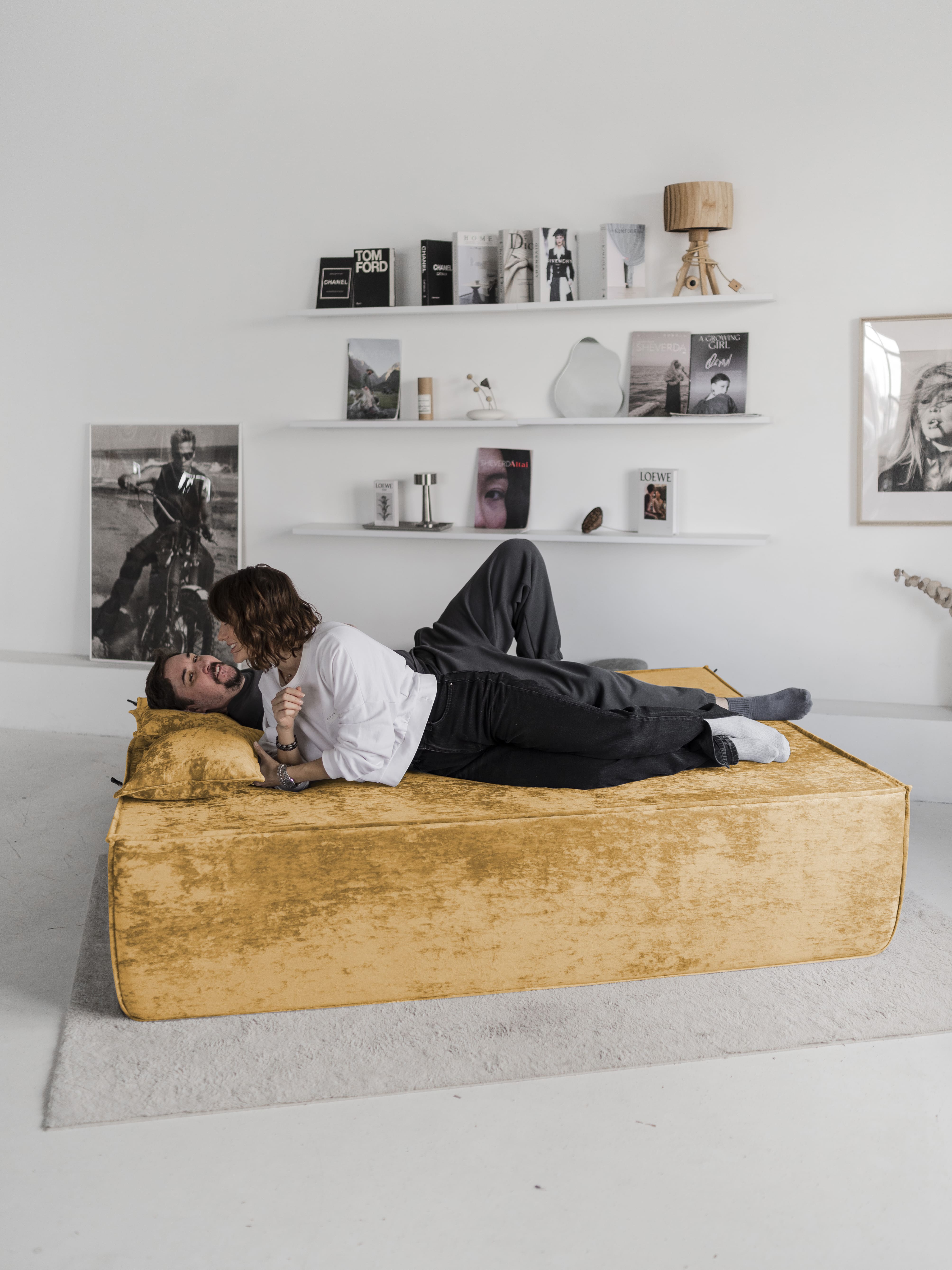 Диван бескаркасный Клайд, плюш (Желтый)