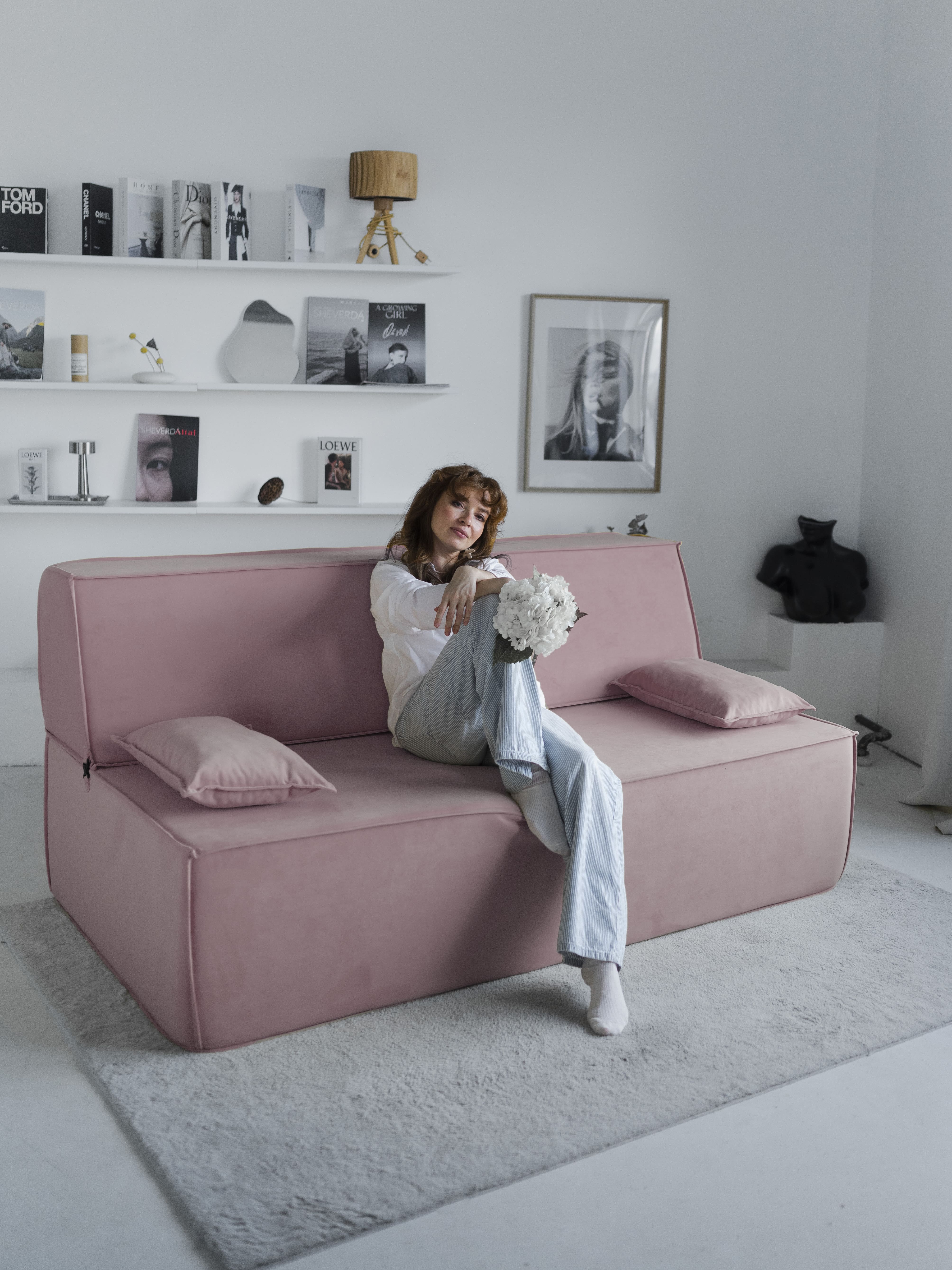 Диван бескаркасный Клайд, велюр (Розовый)