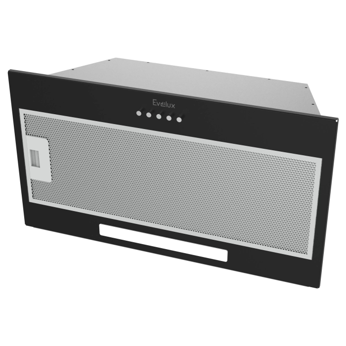 Встраиваемая вытяжка, полновстраиваемая в шкаф, 60 см, отвод/циркуляция, механический контроль, 3 скорости работы, производительность 860 м³/ч, LED освещение, металл, черный, 520х290х176 мм.
