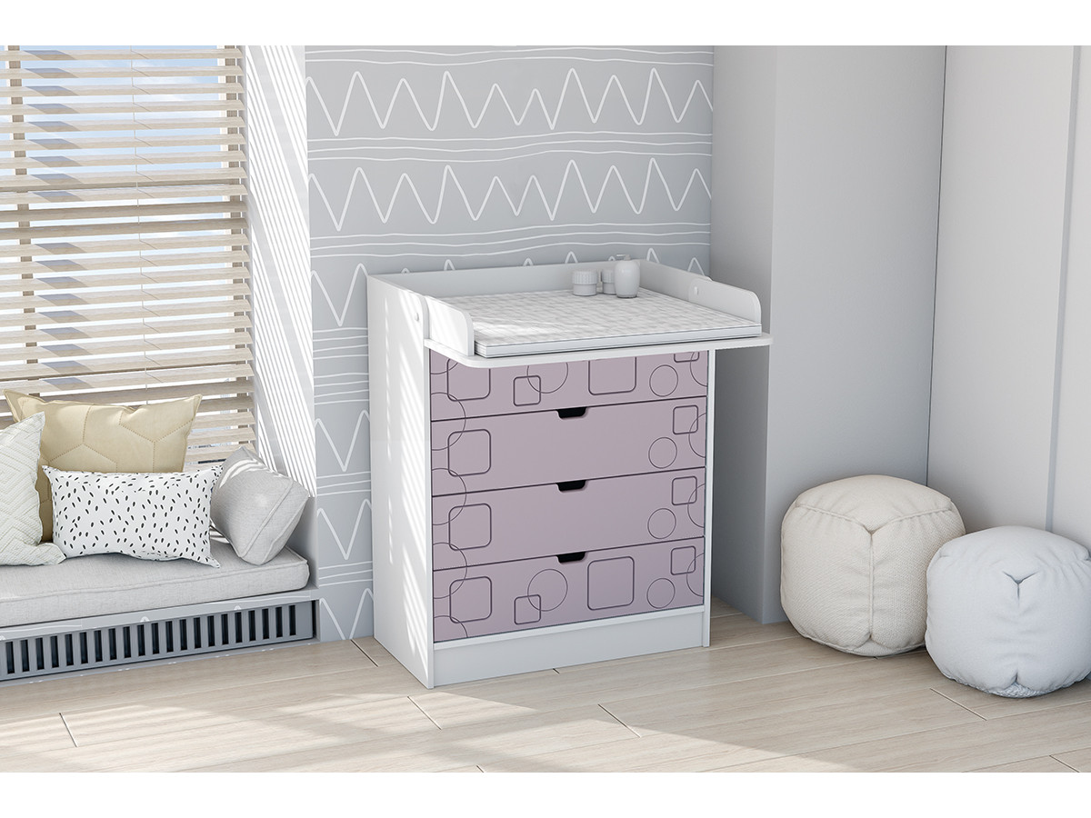 Детский Комод раскладной Бриз МДФ, Квадрат (Белый/Ирис) Код I0000444632