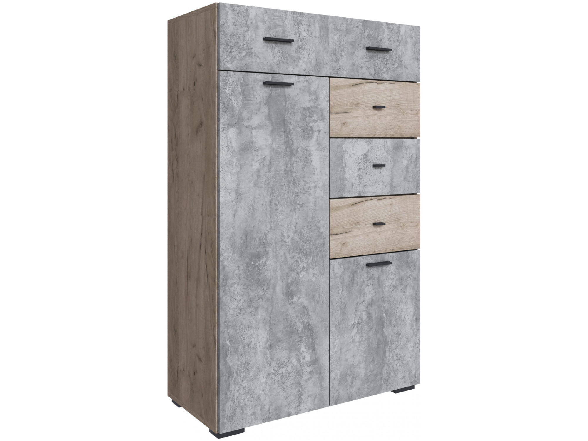 Большой просторный комод размерами 1284×800×376 мм представляет собой вместительное решение для хранения, которое может служить полноценной альтернативой традиционному шкафу. Благодаря впечатляющей высоте 1284 мм, комод обеспечивает максимальный объем хранения при компактной глубине, что делает его идеальным выбором для спальни, гостиной или детской комнаты. Четыре просторных выдвижных ящика оснащены металлическими роликовыми направляющими BRILON, гарантирующими плавное и бесшумное выдвижение даже при полной загрузке. Ящики идеально подходят для организованного хранения белья, одежды, постельных принадлежностей и личных вещей. Две закрытые ниши с распашными дверцами на петлях BRILON без доводчика предоставляют дополнительное пространство для крупных предметов, обуви, аксессуаров или сезонных вещей. Комод установлен на регулируемые пластиковые опоры высотой 20 мм цвета металлик, позволяющие компенсировать неровности пола и обеспечить устойчивость конструкции. Элегантные металлические ручки цвета "Графит" придают изделию современный стильный вид и обеспечивают удобство использования. Сочетание выдвижных ящиков и закрытых отделений создает универсальную систему хранения, способную заменить громоздкий шкаф и эффективно организовать пространство в любом интерьере.