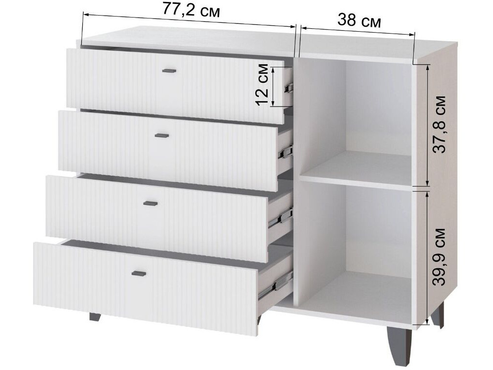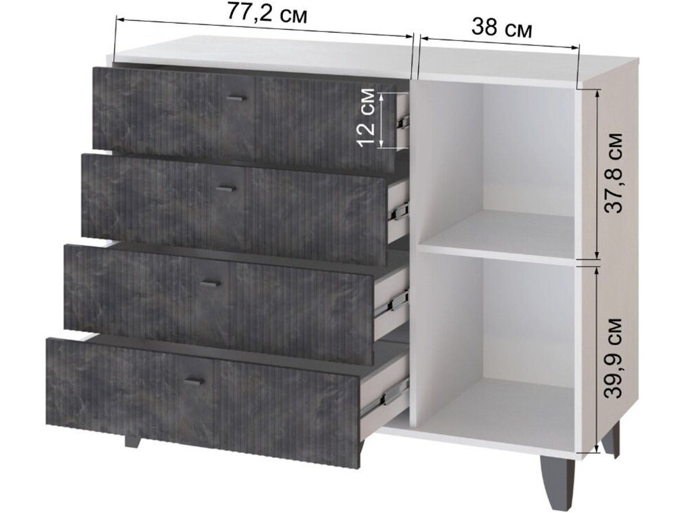 Выбирая комод с четырьмя выдвижными ящиками и дверцей от МДМ, вы получаете стильное, функциональное и надежное изделие, которое станет незаменимым элементом вашего интерьера.