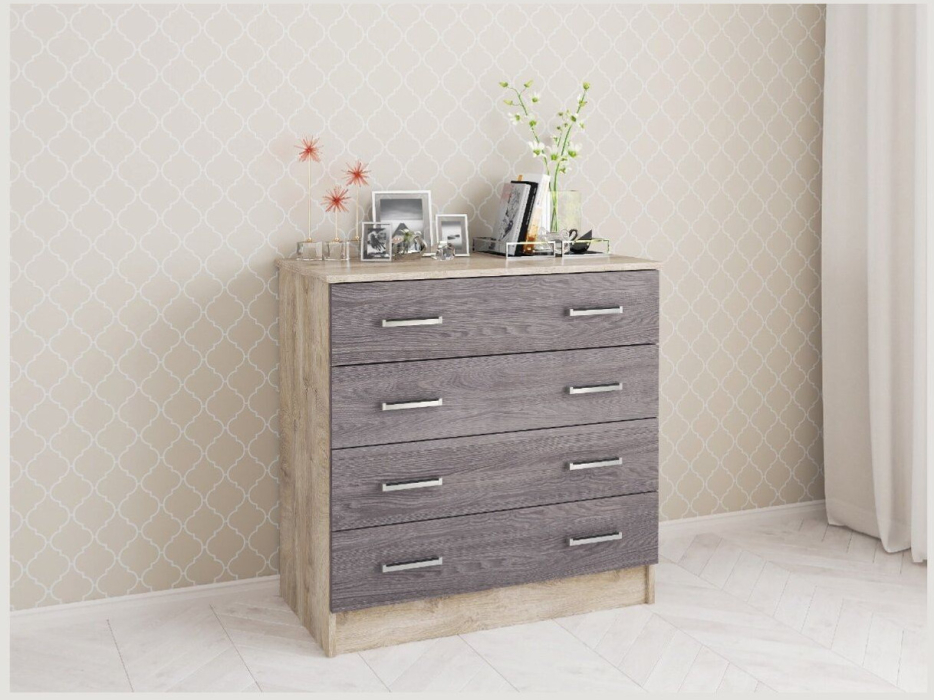 Удобство использования: комод оснащен четырьмя ящиками с роликовыми направляющими, обеспечивающими плавное и бесшумное открывание.
