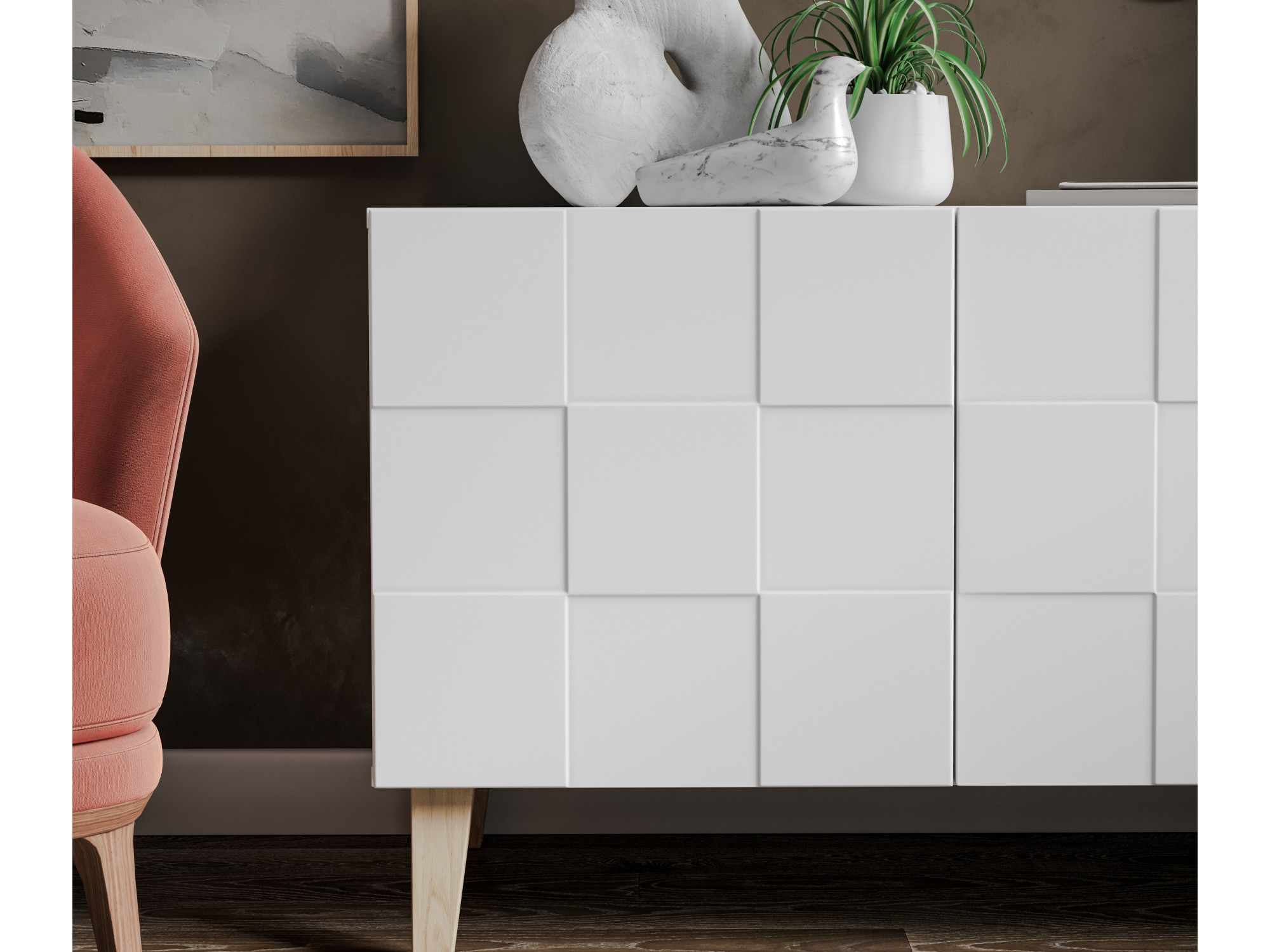 Представляем вашему вниманию 3-х дверный комод с изысканной фрезеровкой, который станет стильным акцентом в вашем интерьере. Этот комод предлагает достаточно пространства для хранения вещей, обеспечивая порядок и организованность.